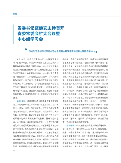 省委书记蓝佛安主持召开省委常委会扩大会议暨中心组学习会