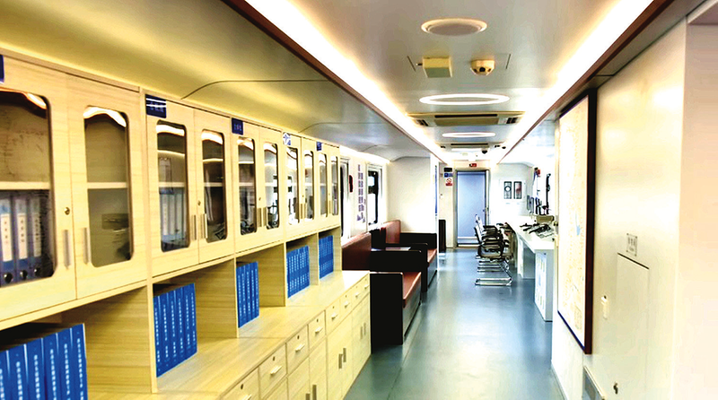 这列最高时速120公里的检修列车,将作业、办公、生活功能深度融合。175米贯通可升降作业平台,如灵动的手臂,让检修人员在进行接触网作业时如履平地。2号车厢的材料加工台是一间“智慧工坊”,职工们在此完成零部件自制与技改创新。10号车厢是可容纳50人的会议室,配备49英寸屏幕屏与10台桌面显示器,让技术研讨与业务培训更具科技感。11号车厢是“中枢大脑”——综合指挥中心,监控人员实时“把脉”作业全程、安全盯控。