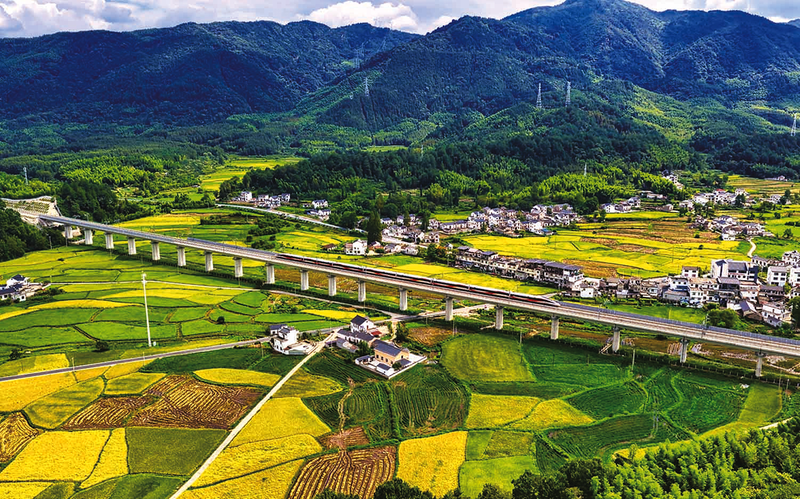铁龙穿翠陌 金稻卧云乡