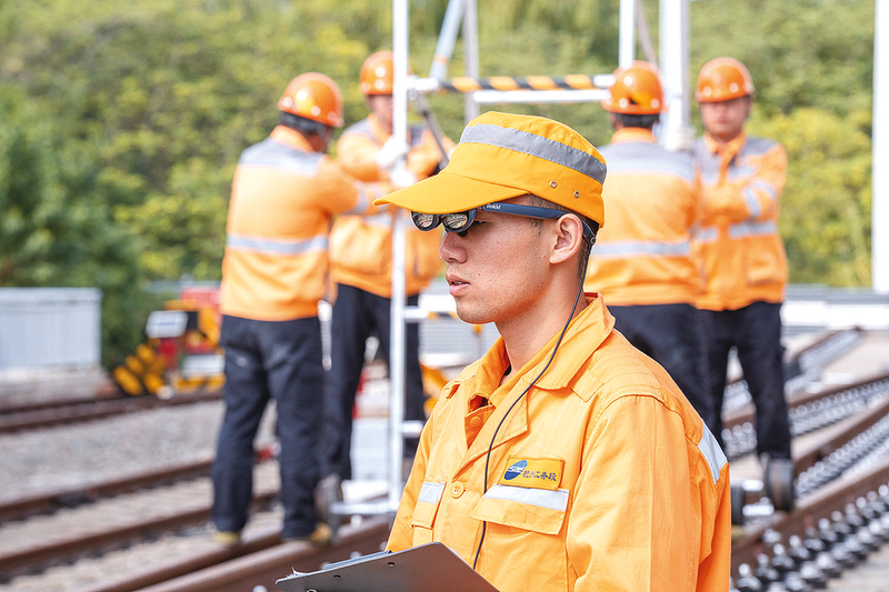 淮安高铁基础设施段作业人员进行轨道作业车分解连挂