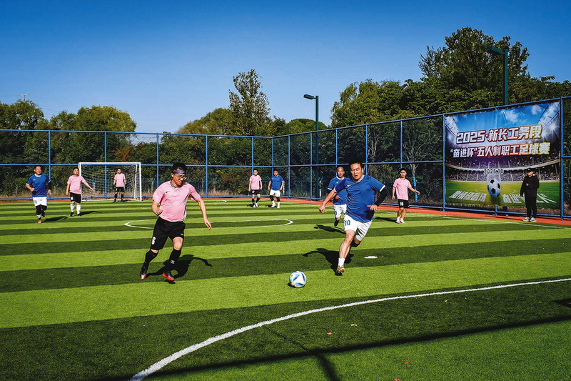 “段超一哥队”的备战历程就是这一氛围的生动写照。自赛事启动以来,队员们利用工余时间自发组织训练,展现出极高的踢球热情。队员封磊深有体会地说:“最近一下班,很多人都来球场练球。经过这几天的磨合,大家配合得更默契了,体能也得到了提升,感觉身体变得更有活力,心情都跟着变好了。”