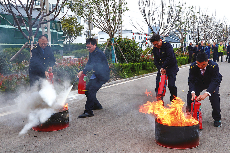 徐州机务段组织职工开展灭火演练。 (通讯员王楷博摄)
