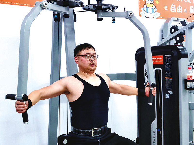健身房里,器械很多,功能各异。刚开始,张亮只在普通的健身器材上练,“至于器械区,不敢去,怕不会,被人笑话。”一次,他趁没人时,偷偷来到器械区,拎起地上的杠铃,学着别人的动作卧推,没想到仅20公斤重的杠铃杆差点压住他。“我可是当过兵的人,怎么能怕这点困难?”从此,每次下班后,不论多累,他先到健身房,向有经验的朋友请教,又看网络视频学习,一招一式琢磨,慢慢懂得了各种器械的健身方法与技巧。久而久之,下班疯狂“撸铁”成为张亮释放工作压力、恢复精力的休息方式。
