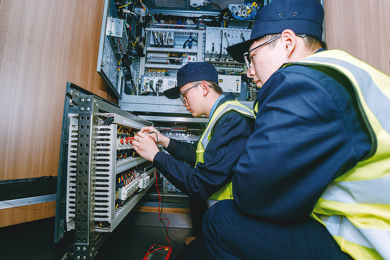 图②:杭州机辆段职工在检查电气综合控制柜。 (通讯员 肖昆 摄)