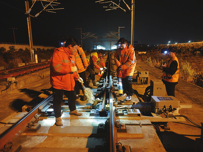 图①:合肥高铁基础设施段职工在进行扫雪除冰应急演练。 (通讯员 唐述虎 摄)
