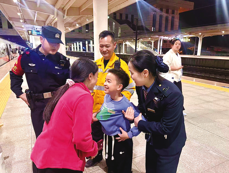 “孩子肯定很害怕,得先稳住他的情绪。”凭借多年的客运服务经验,钟瑷阳一边迅速联系车站铁路派出所,协助查找男孩家人,一边联系G2141次列车长复盘事情经过,试图从源头获取更多线索。与此同时,她将情况告知了“i浙里·和美金华”雷锋服务站客运员丁岚。两人默契配合,共同承担起看护男孩的责任。