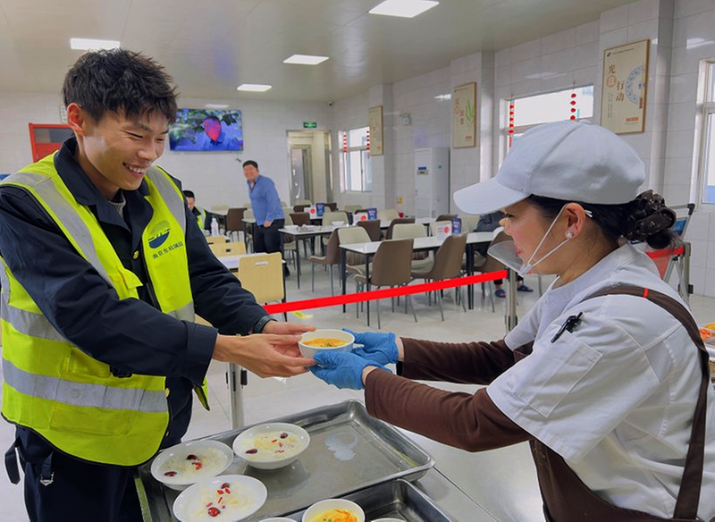 清晨6点,徐州房建公寓段徐州北二公寓的厨房内已飘起浓郁的姜枣香——工作人员正将熬煮得浓稠醇厚的姜枣汤盛入保温桶。“刚退乘,喝上这么一口热汤,浑身都舒服了。”南京东机辆段乘务员宋宝军捧着热汤,脸上泛起暖意。