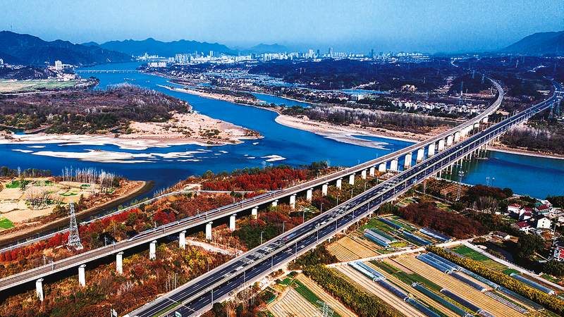 今年第四季度以来,集团公司聚焦市场消费热点,统筹客运资源,主动开展营销引流,通过开行特色专列、优化服务保障、强化“铁路+文旅”融合等系列举措,在高效承接集中客流的同时,实现客运效益与品牌形象的双重提升。图为一列动车组列车行驶在杭黄高铁富春江特大桥上。