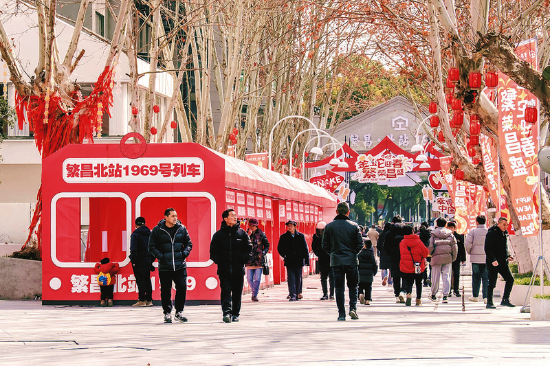 2026年1月,一个承载过去、奔赴未来的全新北站正“破茧成蝶”,为城市更新与文旅融合发展交出繁昌答卷。走进街区,红彤彤的灯笼挂满树枝,徽商故里、楼外楼等老字号均已开门试营业,还有三联书店等全国连锁品牌也齐聚于此,商户们纷纷展示出自己的特色产品和服务。1969文化街区在保留老站文化的基础上,也为城市留下记忆。这里正以崭新面孔出现在人们面前,成为集文化、商业、休闲于一体的时尚新地标。