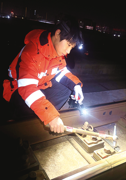 郑卓铖工务生涯的第一课,正是从道岔检查开始的。面对道岔检查这一基础核心作业,他始终秉持扎实高效的原则,将指导老师们口传心授的“一看、二敲、三记、四判”操作流程烂熟于心,并一丝不苟地运用到每一次现场实践中。