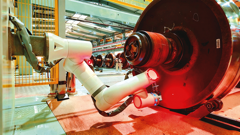 转向架检修流水线旁,枕簧检测机器人正按车型自动调整参数,机器手3秒内就完成了单根枕簧的尺寸扫描,数据实时与标准参数比对。“机器人负责精准扫描和数据比对,我们重点排查隐性隐患。”车辆钳工龚清峰站在检修线旁,仔细检查机器人筛选出的合格枕簧。作为车间里“懂技术、通智能”的青年骨干,他见证了车间的智能化转型,“不同车型的枕簧弹性要求不一样,以前人工选配一组耗时40多分钟,还容易混淆参数。为了跟上智能设备的节奏,我们参加了车间组织的AI操作、参数解读培训,现在机器人18分钟就能搞定初检,我们只聚焦复核把关,既快又准!”