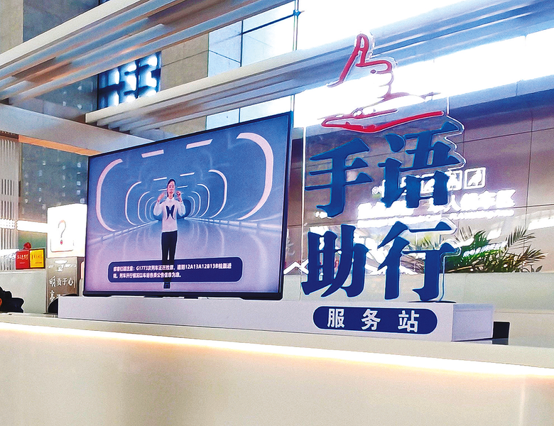 合肥南站在重点旅客服务区上线手语助行系统,通过手语向旅客介绍车次、检票口等信息,让每一份需求都能被“听见”。 (通讯员 朱明 摄)