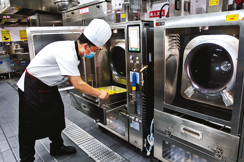 华铁旅服公司“华东印记”虹桥站店主题餐厅引入智能炒菜机,通过科技手段实现后厨效率、餐食品质与健康标准三重提升。 (通讯员 李维莉 摄)